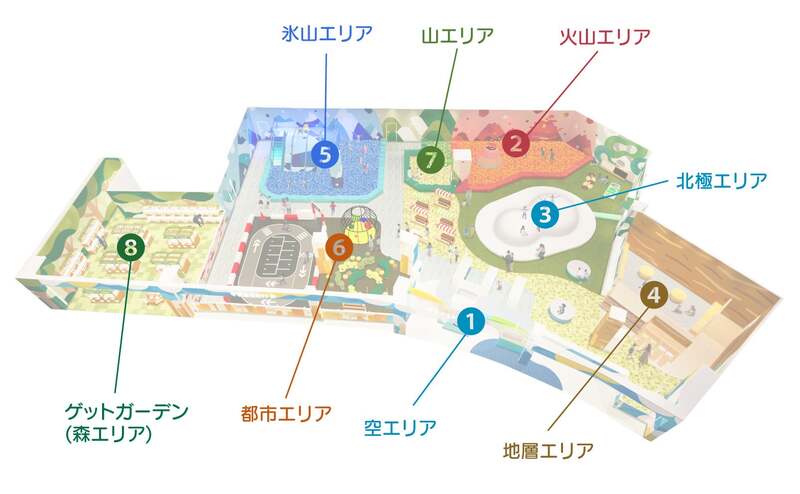 地球をモチーフにした8つのエリアで遊びながら学べる
