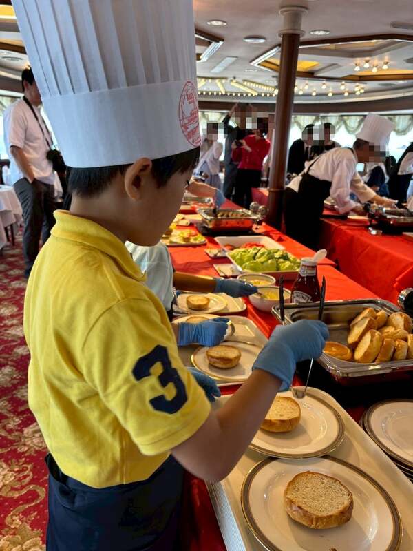 調理部門では、クルーズ限定のオリジナルピザ作りに挑戦。シンフォニーオリジナルエプロンを身に付け、好きな食材を盛り付けて作ったピザは、そのままランチとして楽しめます。