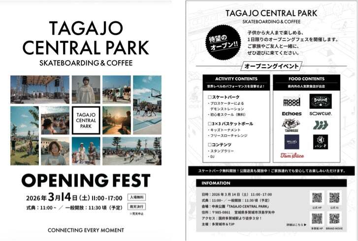 宮城県多賀城市に、都市型スポーツ公園「TAGAJO CENTRAL PARK」が、2026年3月14日(土)にオープンします。