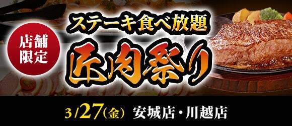 愛知県安城市と埼玉県川越市の「ステーキのあさくま」2店舗で、2026年3月27日(金)にステーキ食べ放題イベント「匠肉祭り」が同時開催されます。