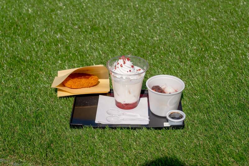 マリオンクレープの「桜チョコスペシャルクレープ」(660円)や、お花見茶屋の「桜あんみつ」(850円)・「いちごミルク」(780円)のほか、フロルの「桜びより」(700円)や「昭和レトロ子供のクリームソーダ」(800円)など、春らしいメニューが揃います。