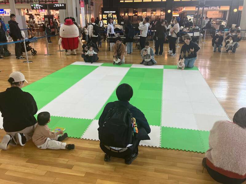 空港ならではの開放的な空間で、赤ちゃんがはいはいでゴールを目指す無料の親子参加型イベントです。