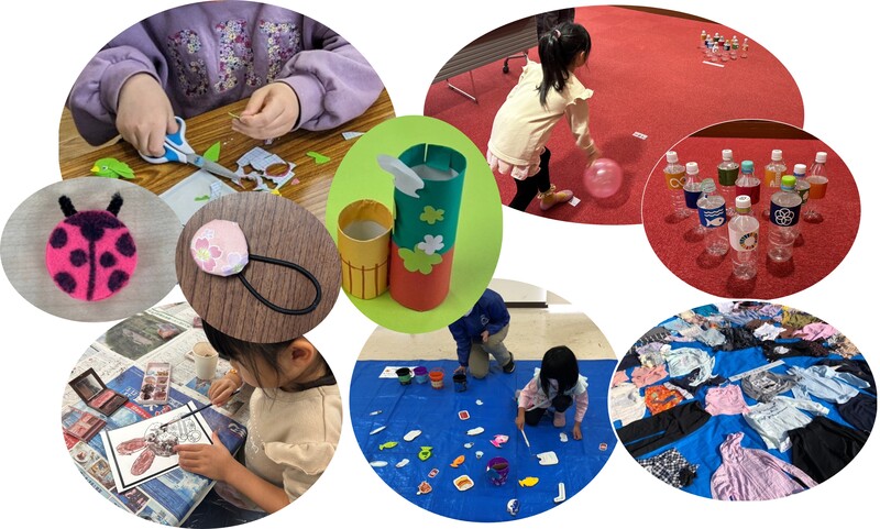 ペットボトルキャップやトイレットペーパーの芯、古着など身近な素材を使った工作やゲームを通じて、SDGsについて楽しく学べるイベントです。