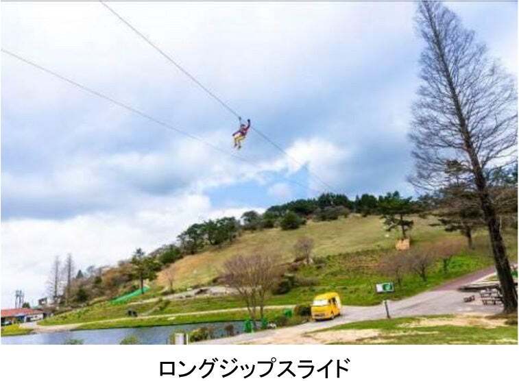 往復約457mを滑り降りる「ロングジップスライド」は当日先着受付制で、大人もスリルを堪能できます。