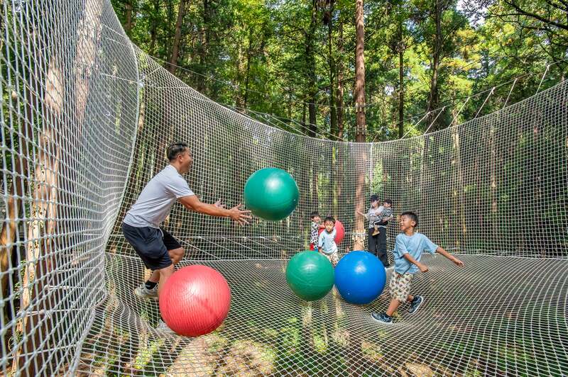 「ネットコース」は、樹の上に広がる大きなネットの中で、飛び跳ねたり、自由なスタイルで遊べる新しいアクティビティです。