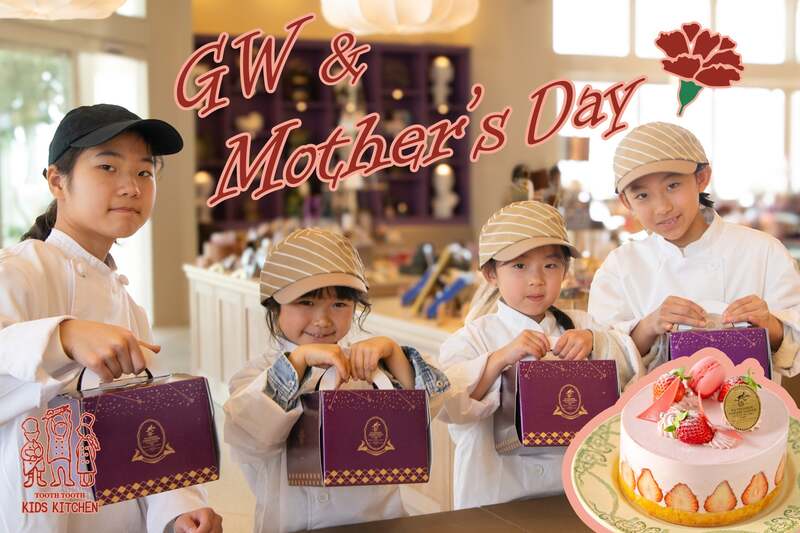 3歳〜12歳の子供がパティシエの制服を着て、苺チョコレートのホールケーキ作りに挑戦できるイベントで、GWや母の日の思い出づくりにおすすめです。