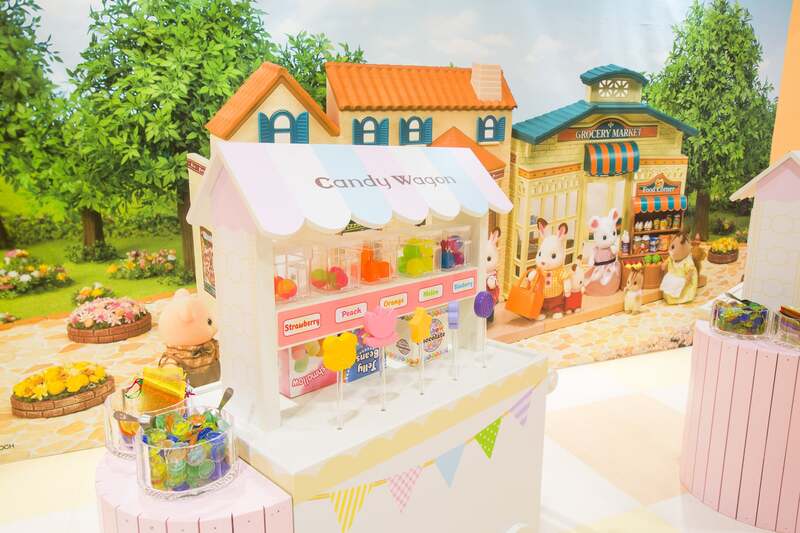 プレイコーナーには、「森のマーケット」や「あげたてドーナッツ屋さん」、「カラフルキャンディーワゴン」が大きくなって登場! シルバニア村のお店屋さんになりきって遊べます。
